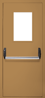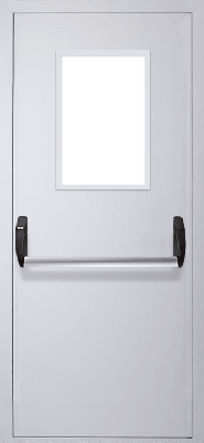 Конструкция однопольных дверей со стеклом и ручкой push-bar
