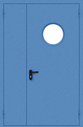 Полуторапольная противопожарная дверь с круглым стеклом (порошок / синяя)